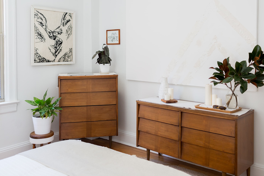 You can use different accessories to decorate the dresser set. For example, you can use a vase with fresh flowers, a picture frame, or a lamp.